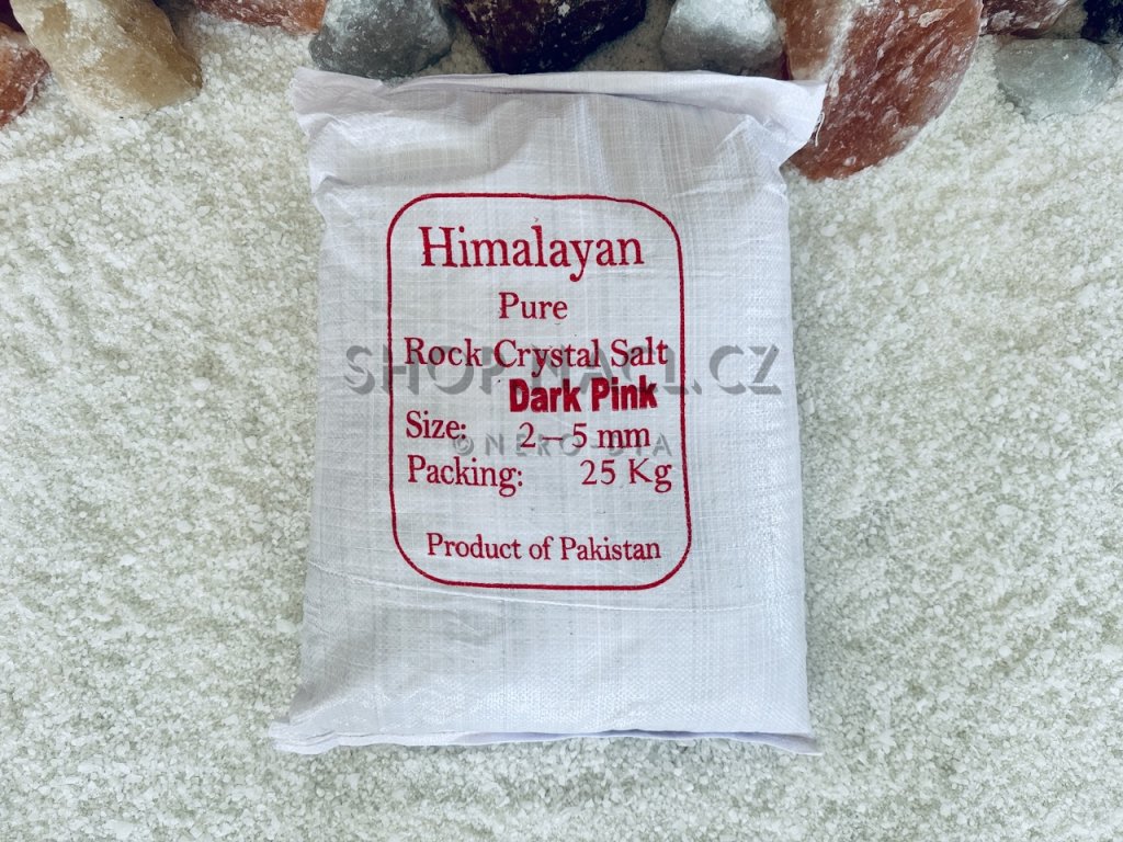 Tato jedlá himálajská sůl ve frakci 2–5 mm pochází ze slavného solného dolu Khewra v Pákistánu. Obsahuje přírodní minerály a vyniká krásnou barevností krystalů – od světle růžových po sytě červené. V potravinářské kvalitě je vhodná jak ke konzumaci, tak i jako přísada do koupelí, pro wellness procedury, bazény se solinátorem i pro dekorativní využití v interiérech solných jeskyní.